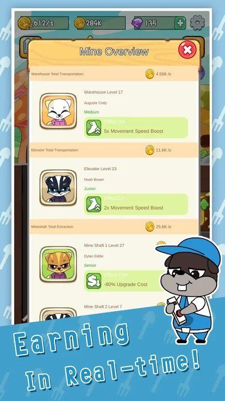 1. 挖掘宝藏:玩家需要控制老鼠在地下矿井中挖掘宝藏,通过点击屏幕控制老鼠的移动方向。