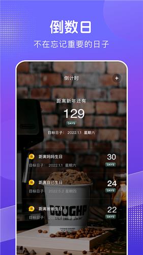 1. 倒数日管理:用户可以添加、编辑和删除倒数日,方便记录和管理重要的日子。