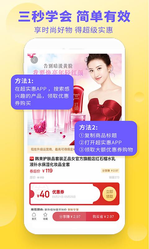 超实惠带您实现“优惠券领到手软,分享得高额回报”的购物体验。