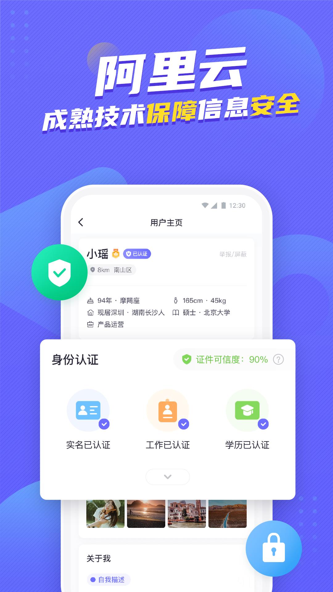 – 特色:身份、学历、工作三项认证,保障信息真实和交友安全;