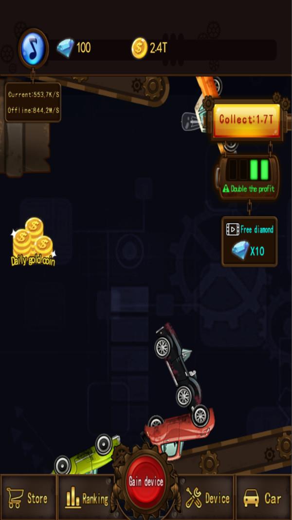 2. 收集金币:在砸车的过程中,玩家可以收集到金币,用于购买新的车辆和道具。