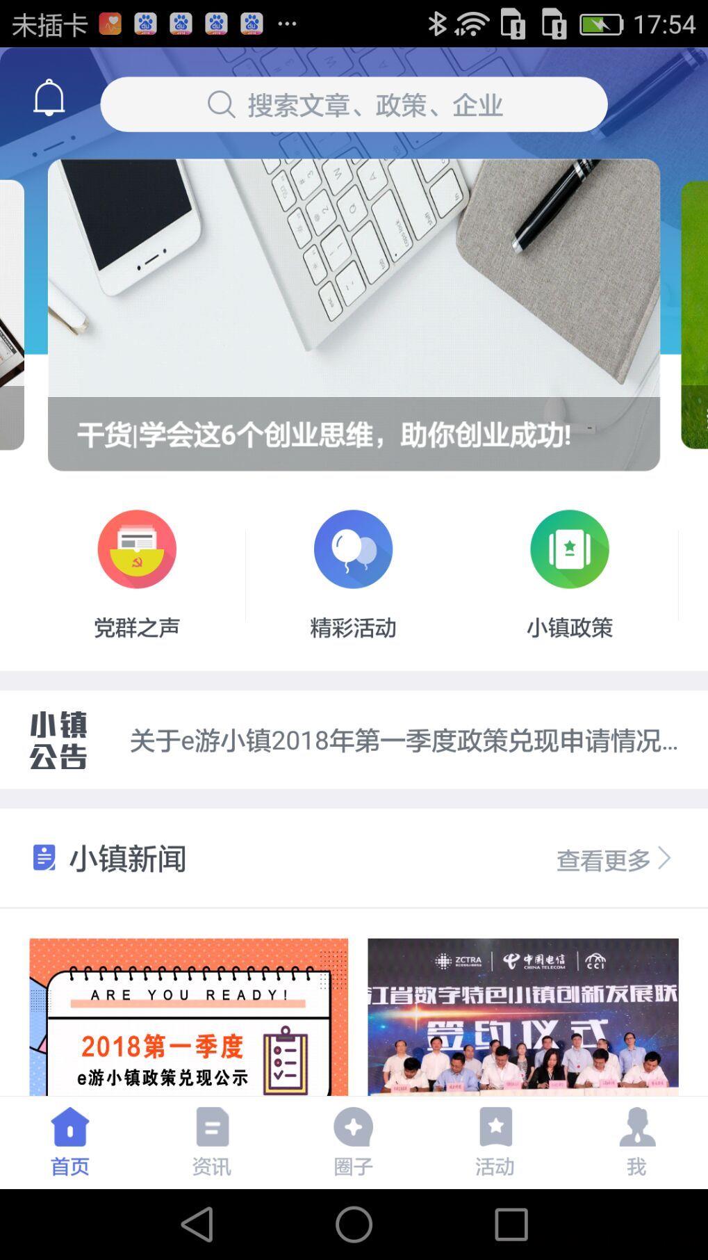 e游小镇是专为创业者打造的移动端应用,在这里,敏锐深刻的行业资讯,新鲜热辣的本地新闻、整合完备的金融政策、方便快捷的生活服务,应有尽有。我们创造了一个创业者间交流与互动的平台,用户可以在此发布动态,了解或参与小镇活动,有了它,关于e游小镇和创业一切都掌握在你的手上!
