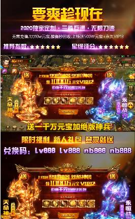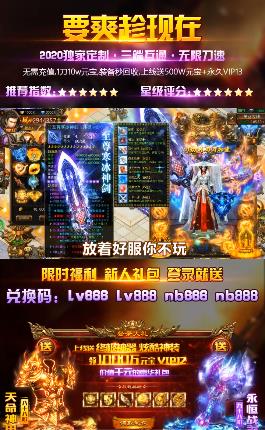 2020全新传奇,无限转职,装备全靠打,无付费,12转神器靠打!