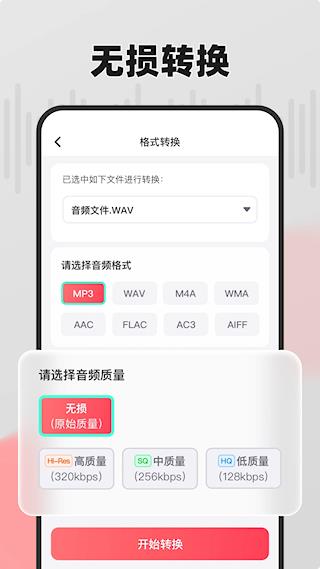 3、选择转换后的音频格式与质量,点击【开始转换】。