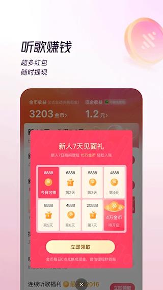 超多红包见面礼,听歌听书有福利,天天畅享,随时随地提现到账。