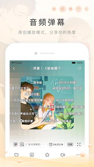 涵盖广播剧、有声漫画、音乐、听书等二次元音频。