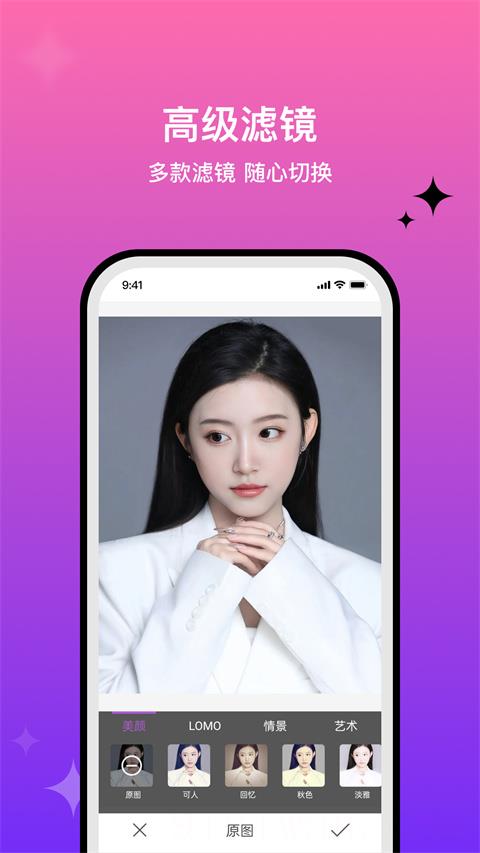 2、相机滤镜效果:实时呈现经典滤镜,随手一拍就是质感大片,提升拍摄体验。