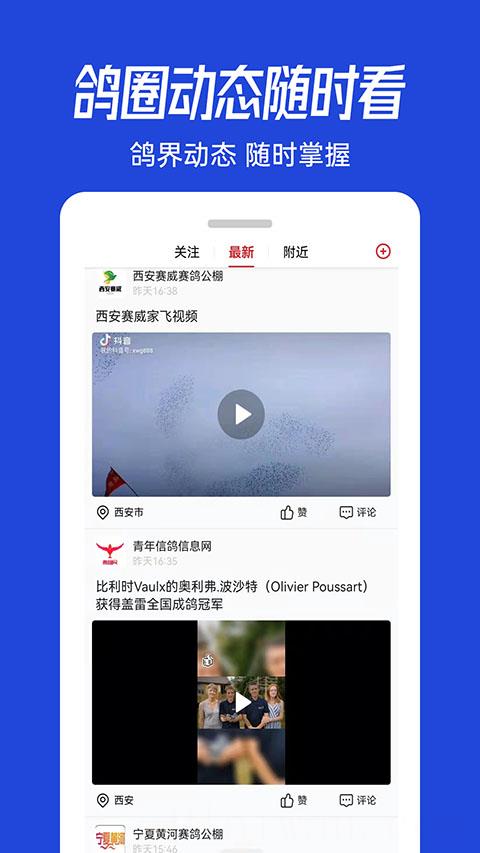 3、鸽圈动态洞察:鸽圈动态随时可看,不错过鸽界任何重要信息。