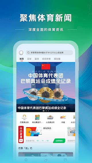 应用首页实时更新全球体育要闻,让用户第一时间掌握运动员动态和赛事结果。其简洁直观的界面设计,搭配流畅的操作体验,充分考虑了不同年龄段用户的使用习惯,是广大体育爱好者获取体育资讯、观看赛事直播的理想选择。