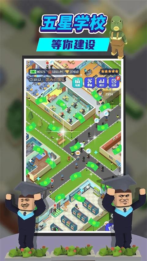 《我要当校长》将玩家带入一个充满挑战与机遇的校园世界,扮演校董的角色,亲身体验从零开始打造顶尖学府的乐趣。在游戏中,你将负责规划校园建设,改善教学设施,招募优质师资,并提升教学质量。通过不断优化管理,吸引更多优秀学生前来就读,尽享校园管理的独特魅力。