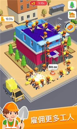 为了提升建造效率,玩家需不断增加工人数量并提高工作效率,从而赚取更多收益,逐步发展成为一位建筑大亨。每当一个建筑项目完成后,系统会根据建筑的美观程度及其他评审标准对其进行评分,玩家可以获得丰厚的道具奖励,同时解锁新的世界和更具挑战性的建筑任务。