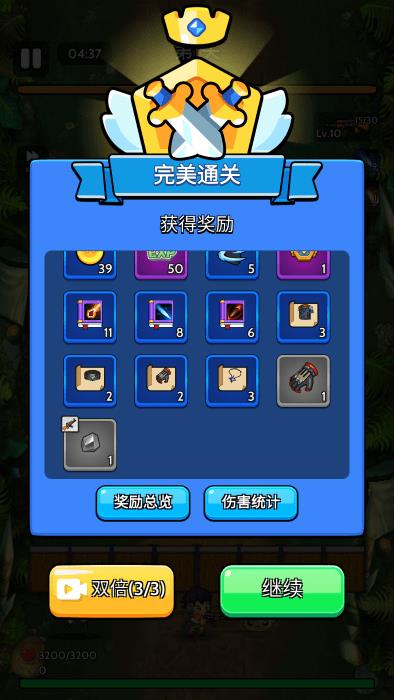 3、通关后玩家将获得丰厚奖励,点击【继续】持续挑战