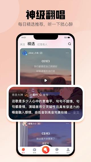 拥有专业音效和高品质伴奏,能一键修音,优化歌声。
