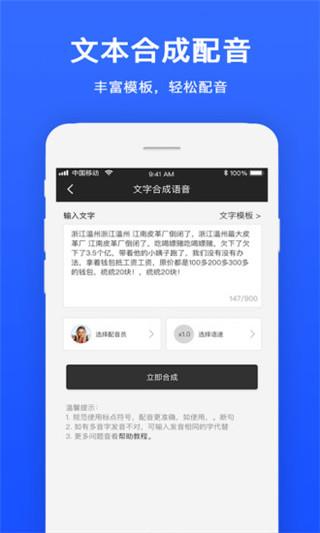 2、智能文本配音:输入文字即可快速生成语音,丰富模板一键套用,零基础也能轻松完成专业配音。