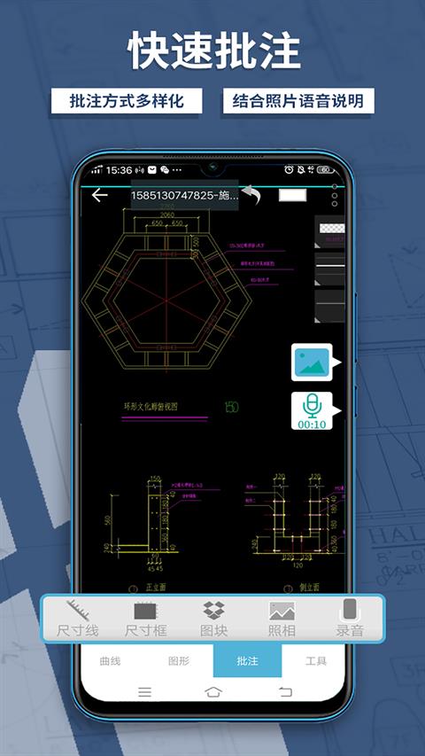 3、多元批注协作:支持语音、照片、文字等多种批注方式,一键分享图纸,轻松实现团队协同办公。