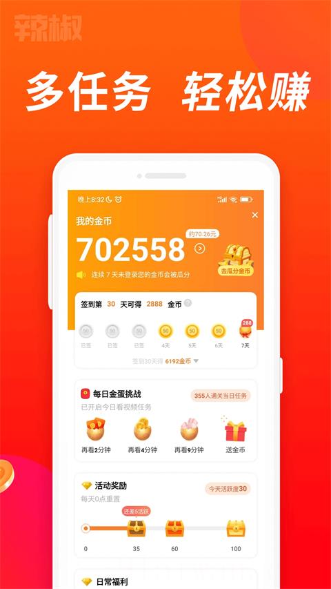 3、金币兑换体系:每日签到、刷视频可积累金币,兑换现金或平台福利,让休闲时间产生价值。