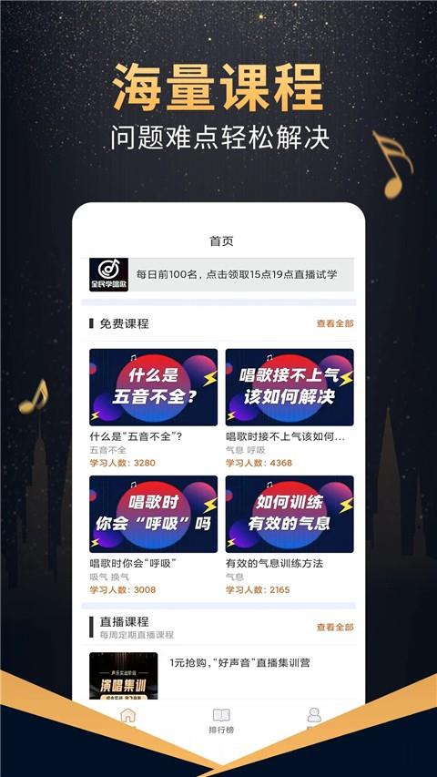 1、海量免费课程库:搭建庞大的声乐课程体系,从基础发声到高阶技巧,每节课都有名师深入剖析,为用户提供系统学习路径。