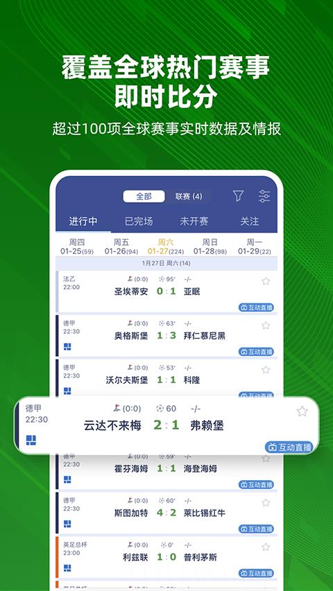 1、多维度数据呈现:整合即时比分、技战术分析、球队数据等全方位赛事信息。