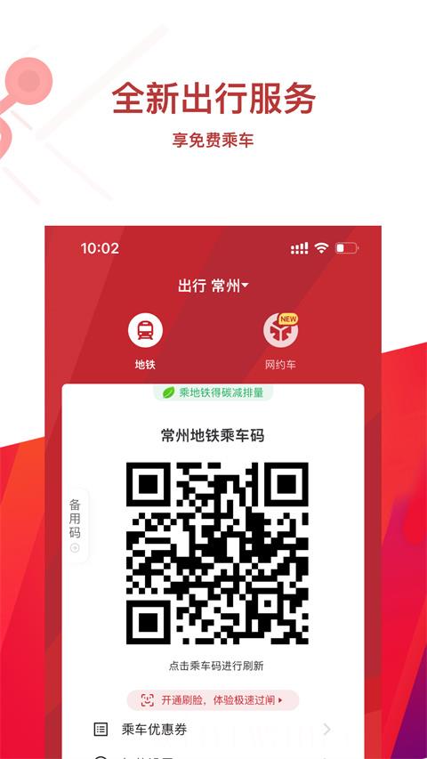 1、乘坐常州地铁时出示【常州地铁乘车码】扫码过闸。
