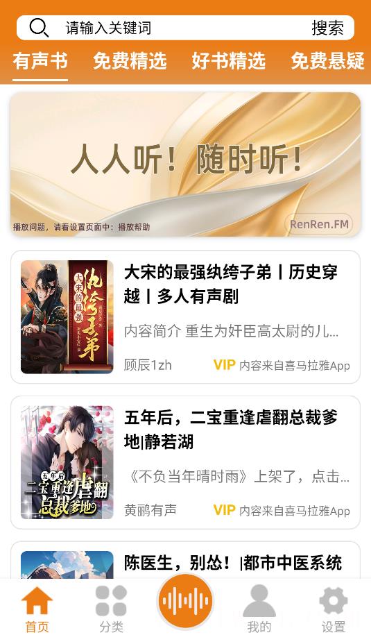 1.免费畅听:所有有声资源均可免费收听,无强制付费订阅。