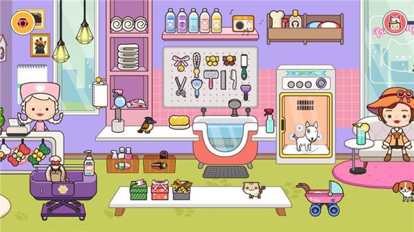3、在建筑内部,探索各个区域,与角色和宠物进行互动,体验游戏内容。