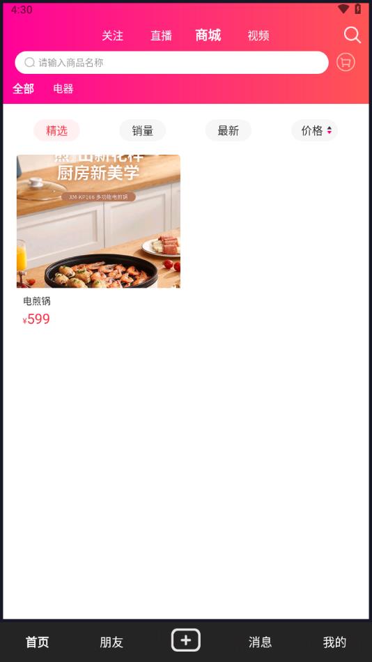 2、进入【商城】页,选【精选】查看推荐商品,可按销量等筛选。