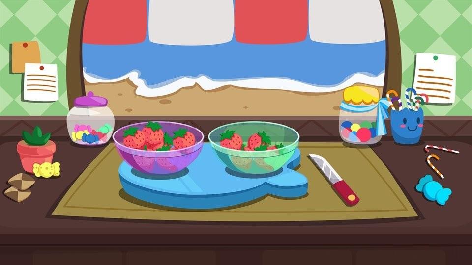 1、采用卡通风格画面设计,打造出简约整洁的厨房环境,提升视觉体验与沉浸感。