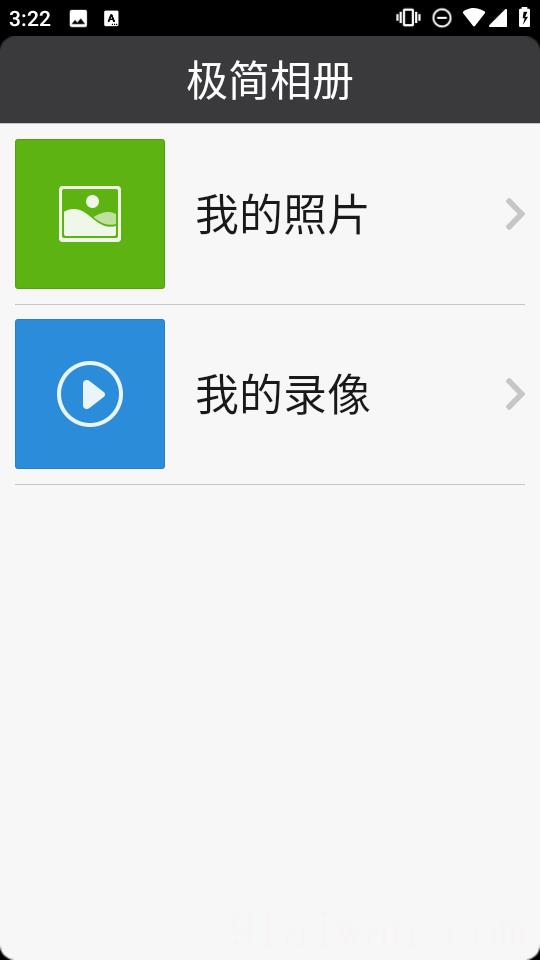 1、进入【极简相册】,点击【我的照片】查看图片,或选【我的录像】浏览视频。