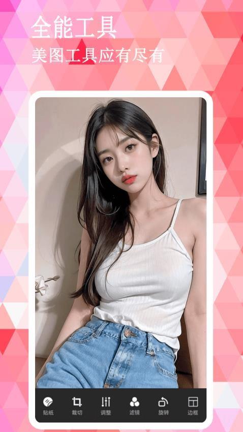 1、首页选择【图片编辑】【人像美颜】【图片拼图】【添加相框】,开启图片处理。