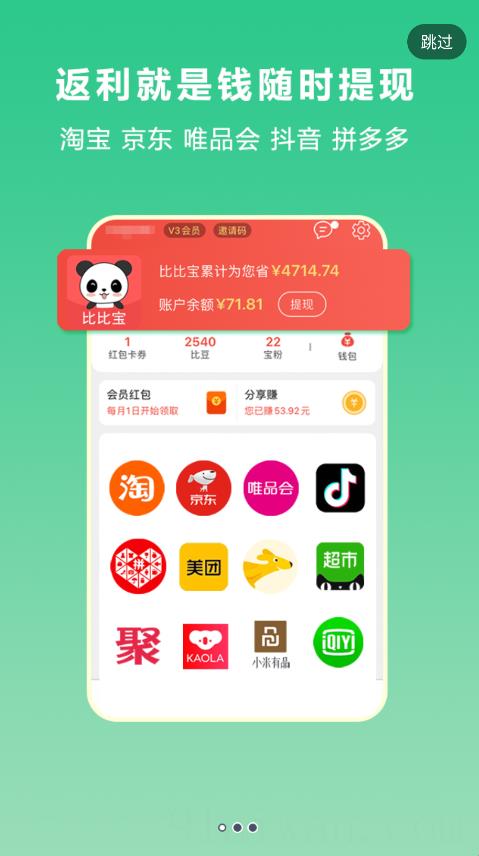 1、整合淘宝、京东、拼多多等多个电商平台优惠信息,构建统一省钱返利入口。