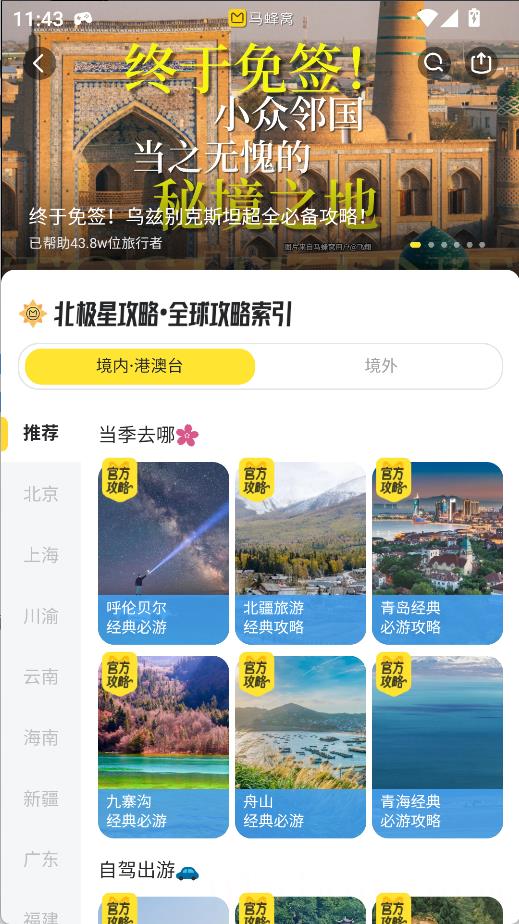 2、汇集游记攻略、嗡嗡图文动态与旅行问答,构建以经验分享和互动交流为基础的旅游社区氛围。