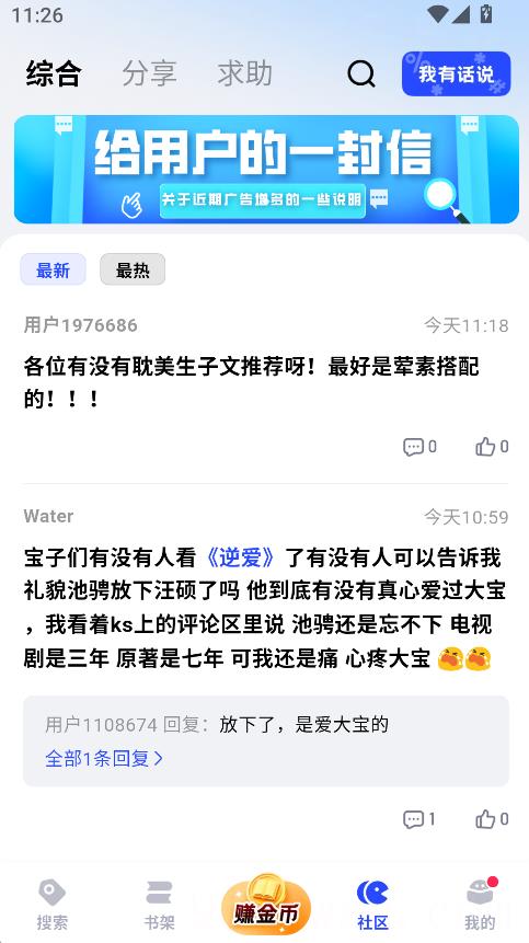 3、支持书签、评论、吐槽等基础阅读互动功能,满足日常追文与交流需求。