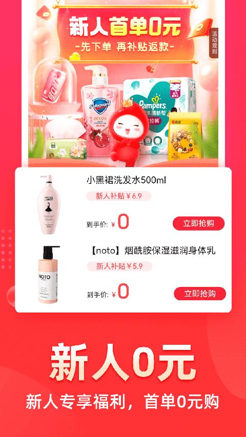 1、从APP内栏目或商品分类里挑选商品下单,如:9.9包邮、淘抢购、母婴等;