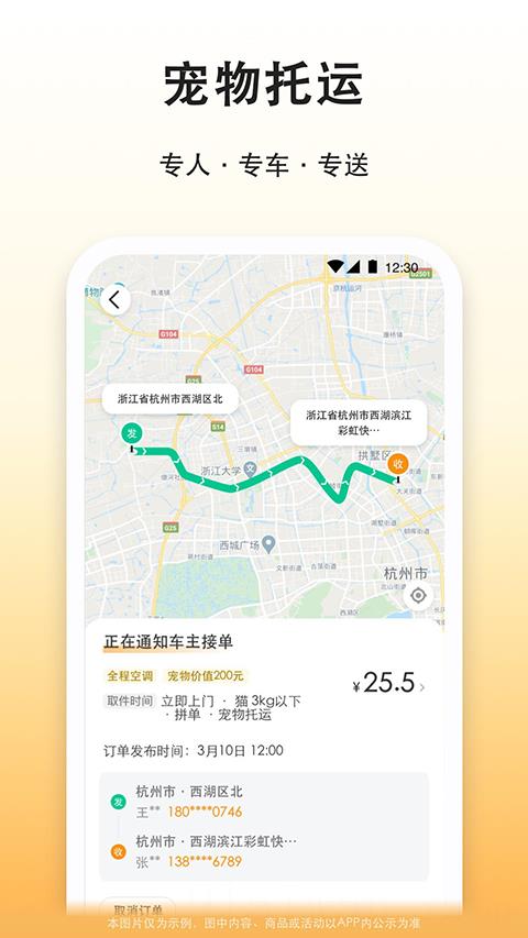 1、功能多样实用:主要提供顺风车、长途急件、送宠物、帮忙办事等服务,覆盖个人出行及代办需求。