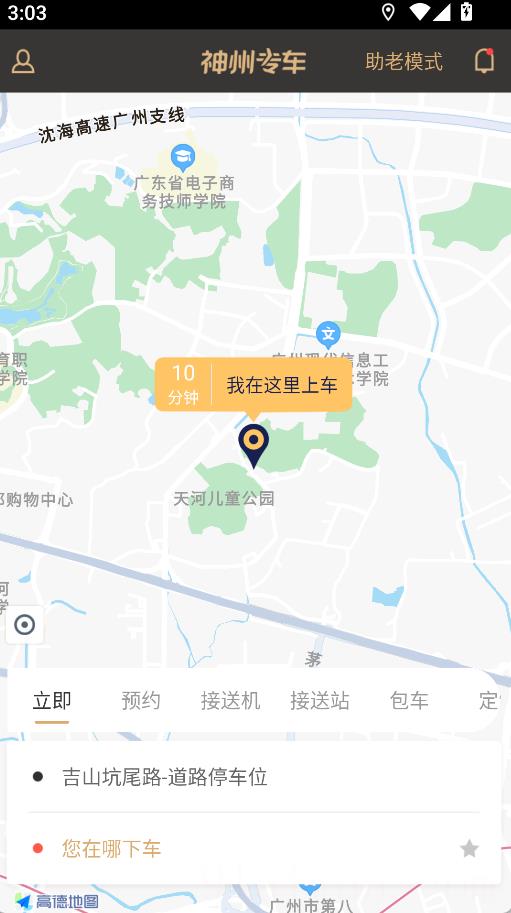 1、登录神州专车APP后,点击“预约”功能,选择预计的上车时间以及具体的出发地点。