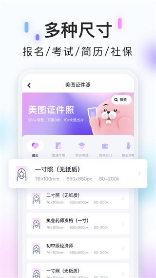 各种类型的证件照尺寸直接切换设置,使用很简单