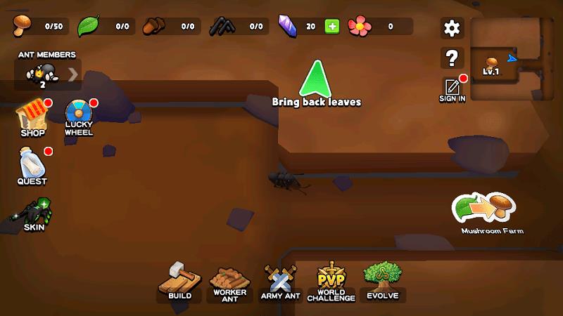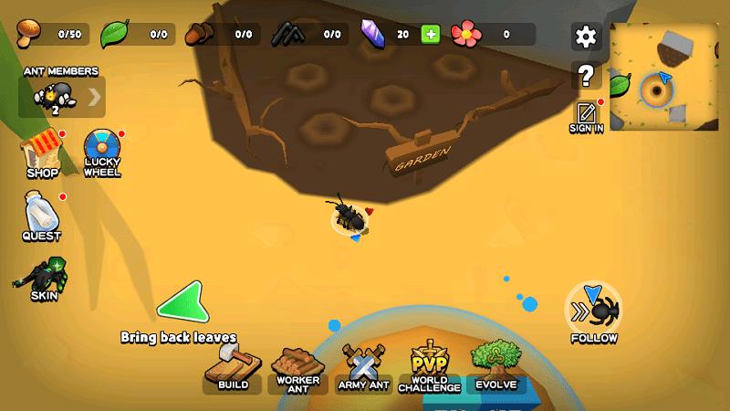 3、沙盒自由玩法:采用自由的沙盒玩法,可指挥蚂蚁建造巢穴、收集食物,开启领土扩张之旅,玩法耐玩,带来无限乐趣和探索空间。