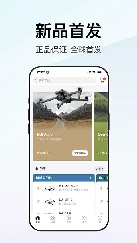 1、新品优先体验:大疆新品无人机上市前30天开放预约,注册会员可提前获得购买资格,享受首批发货特权。