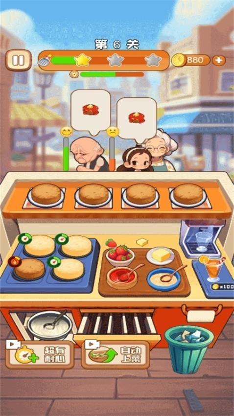 4、轻松氛围营造:轻松欢快的背景音乐,让玩家沉浸料理世界,反复游玩仍保趣味性,带来愉悦的经营体验。