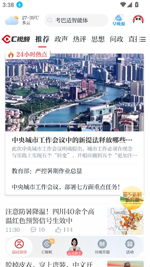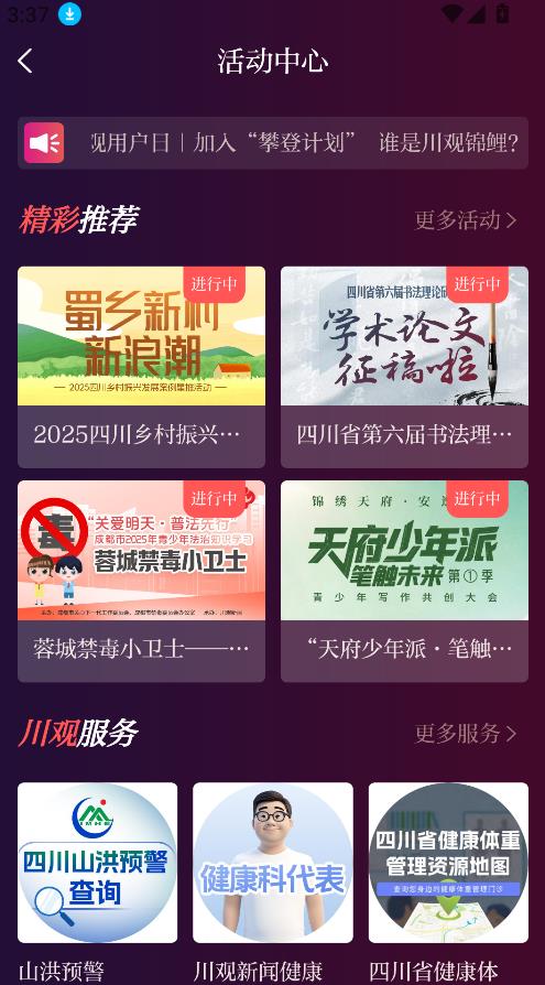川观新闻App是一款专注于四川本地政经新闻的资讯平台,致力于围绕四川地区的改革与发展话题,服务政界、商界、学界以及关注四川的社会各界群体。该平台突出市县新闻的展示,支持用户订阅本地频道,并整合原创内容、智能新闻采集和地方账号的资讯。川观新闻App提供丰富的多媒体体验,包括新闻直播、短视频、动画等形式。此外,平台还设置了积分商城和答题互动活动,打造了新闻阅读、互动、学习与福利相结合的全新阅读生态。