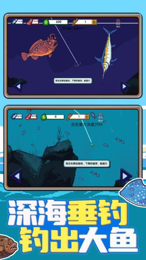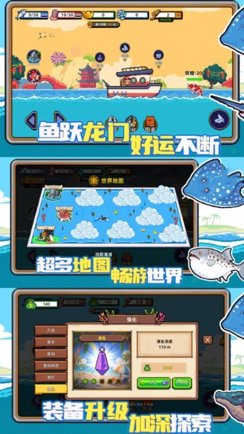 1、钓具进阶体系:碳素鱼竿到电动卷线器逐级解锁,深海钓组应对大型鱼种提升捕捞成功率与收益。