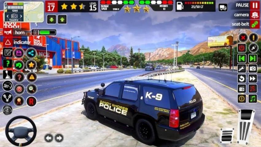 《3D真实警车模拟》是一款驾驶模拟游戏,玩家将扮演警察驾驶各种警车执行任务。游戏提供多种警车类型,玩家可以解锁并自由选择。游戏支持两种主要任务模式:竞速追捕与日常巡逻,带来丰富的游戏体验。