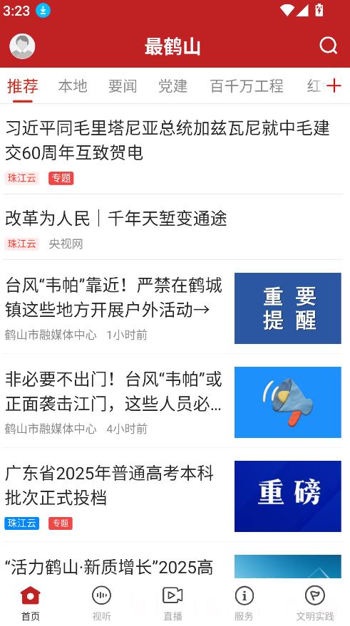 1、直播鹤山频道可实现远程在线观看本地重大活动、新闻发布或城市风貌。
