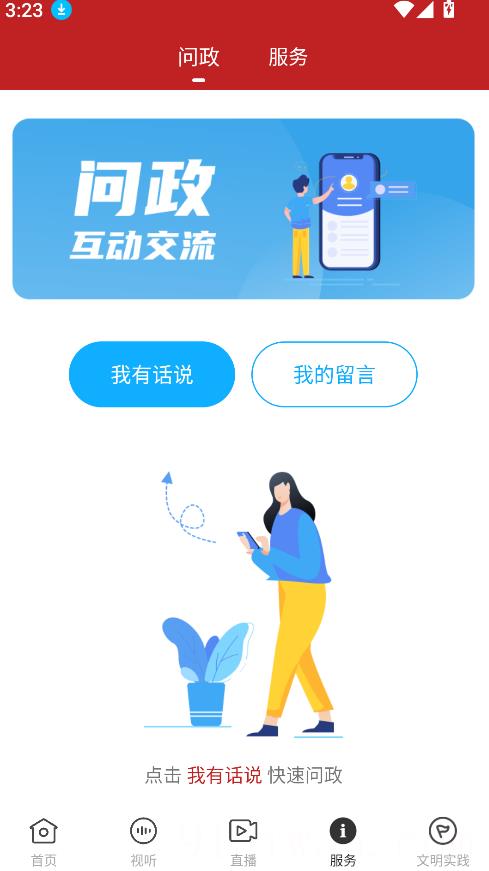 1、进入最鹤山App首页后,点击底部导航栏中的“视听”选项,进入视频与电视内容专区。