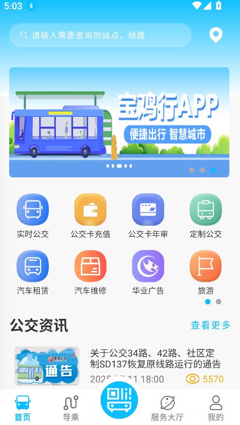 《宝鸡行》是宝鸡市公交公司推出的官方出行平台,致力于为市民提供便捷的公交服务。该平台支持扫码乘车、实时查询公交信息、语音导航以及换乘方案等多项功能,能够精确显示车辆的实时位置并预测到站时间,帮助用户优化换乘路线,提升出行效率。