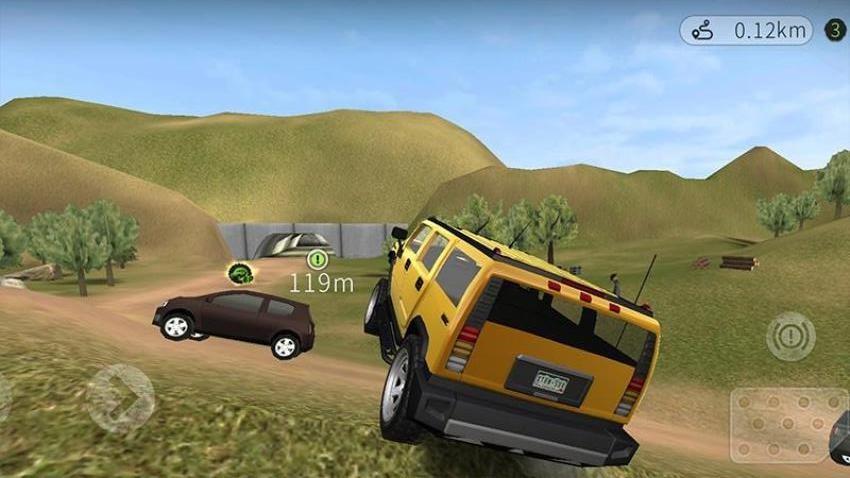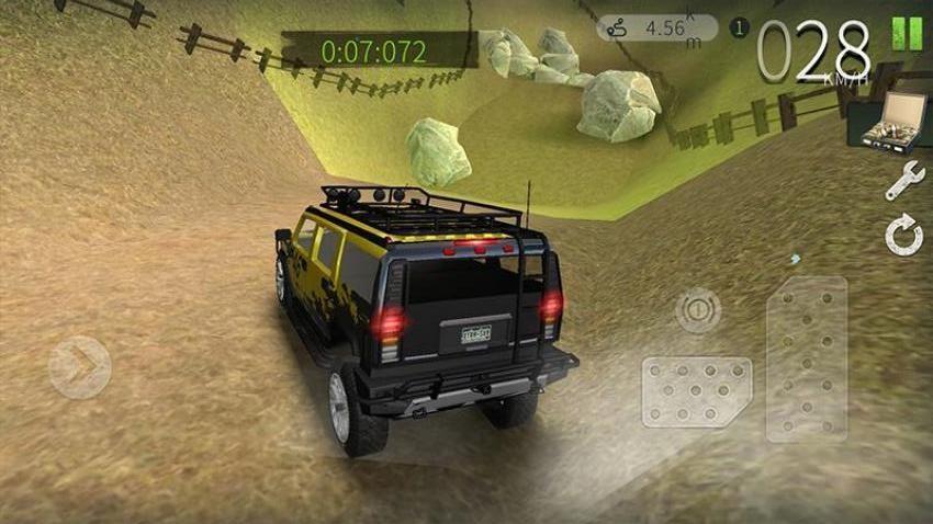 2、用左右按键控制方向,右边按键刹车/加速,在野外道路行驶~