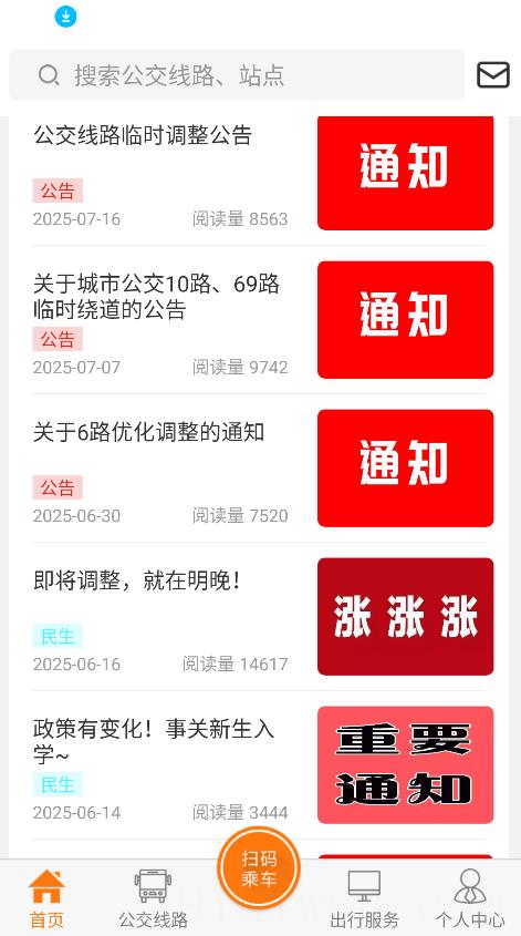 1、打开全澄通app首页,点击“公交路线”功能入口,进入公交线路查询界面。