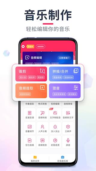 1、打开音频音乐剪辑app,点击音频编辑功能