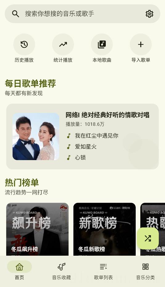 冬瓜音乐是一款完全免费且无广告的音乐应用,用户可以畅享无限制的歌曲播放与下载。该应用汇聚了多个平台的正版曲库,覆盖了流行、摇滚、古典等多种音乐风格,满足不同听众的需求。通过分析用户的听歌习惯,冬瓜音乐能够智能推荐个性化歌单,结合精准的关键词搜索功能,帮助用户轻松发现心仪的好音乐。此外,应用内置的均衡器和变速变调功能,可以让用户根据个人喜好定制专属音效,打造独特的音乐体验。更特别的是,冬瓜音乐的界面主题色会随着当前播放的音乐变化,带来别具一格的视觉享受。