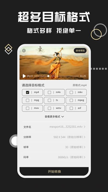 mov、mkv等数十种视频格式一键互转,丰富全面